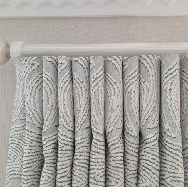 Pencil Pleats – can be used for most fabrics but especially ideal for lighter, thinner ones or when you want to cut back the fullness – eg. under pelmets. Also suits sheers.